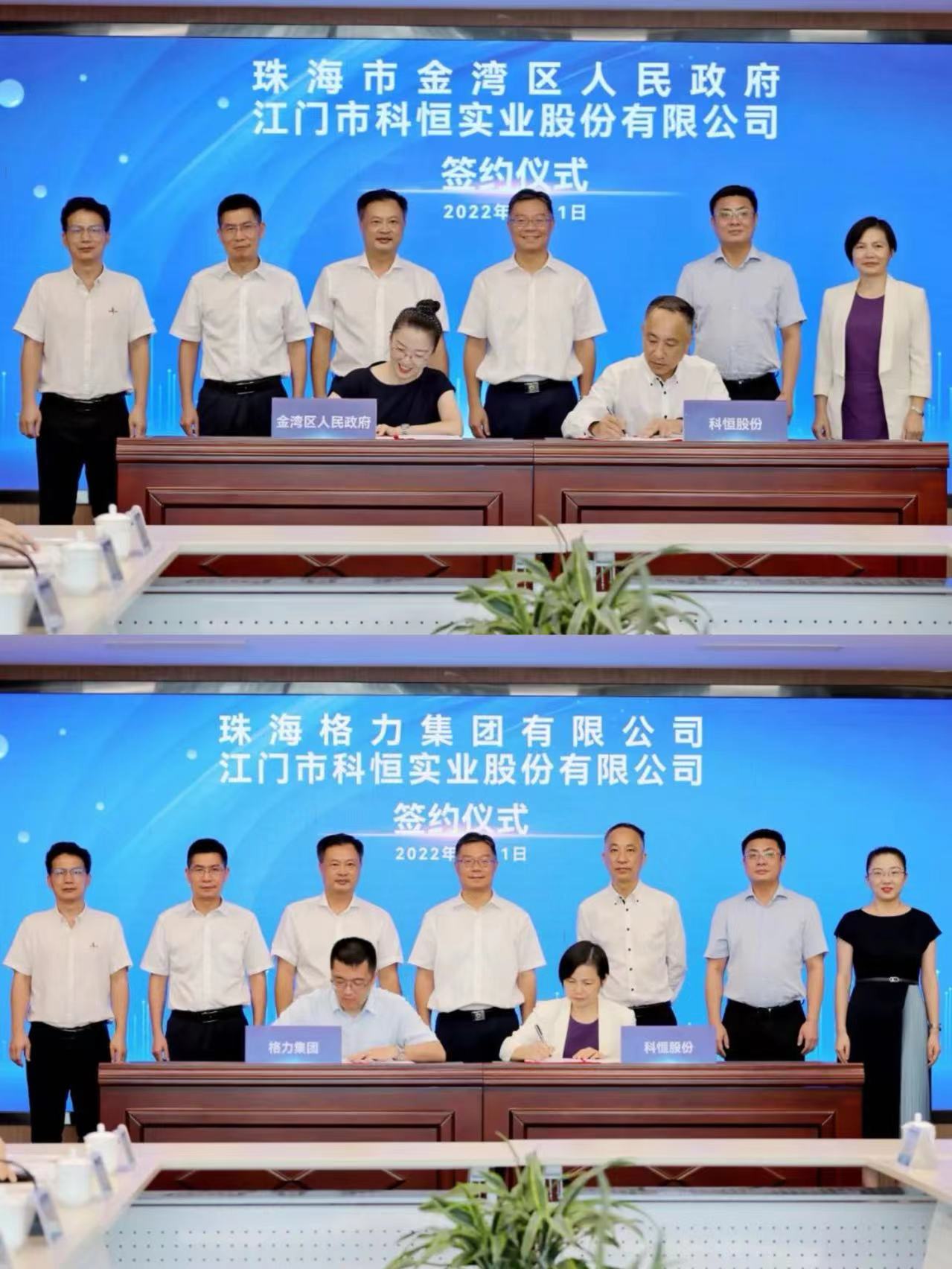 2022年7月,珠海市金灣區(qū)人民政府、珠海格力集團(tuán)與科恒股份簽訂合作協(xié)議,科恒新能源材料及裝備項(xiàng)目將落戶(hù)珠海金灣 。